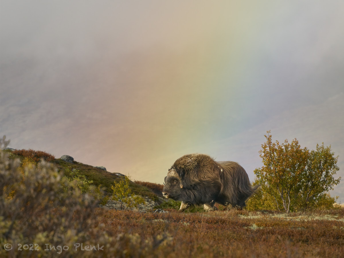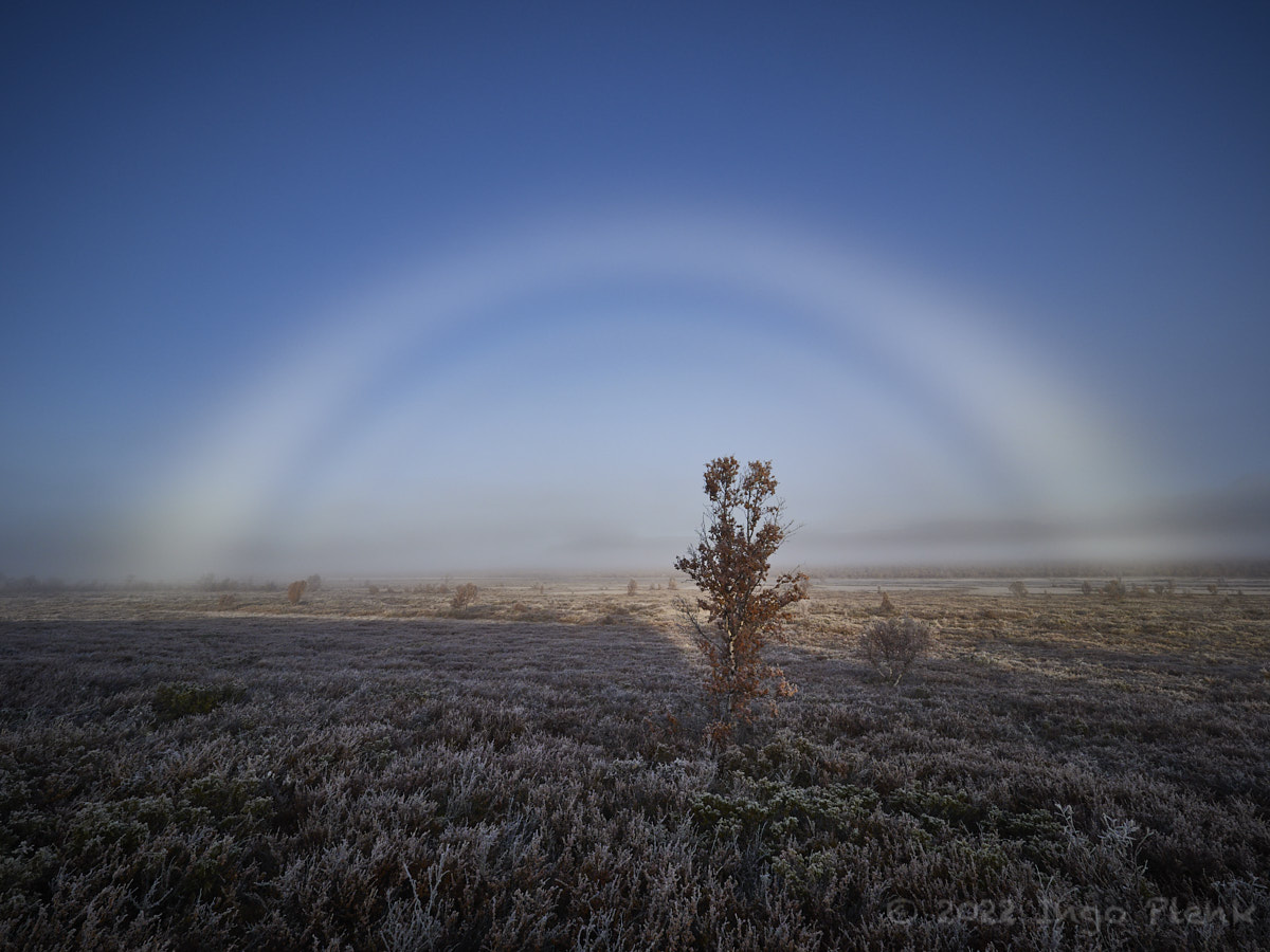 Eine besondere Form des Regenbogens erscheint am frostigen Morgen, die eigentlich erwarteten Elche allerdings nicht.